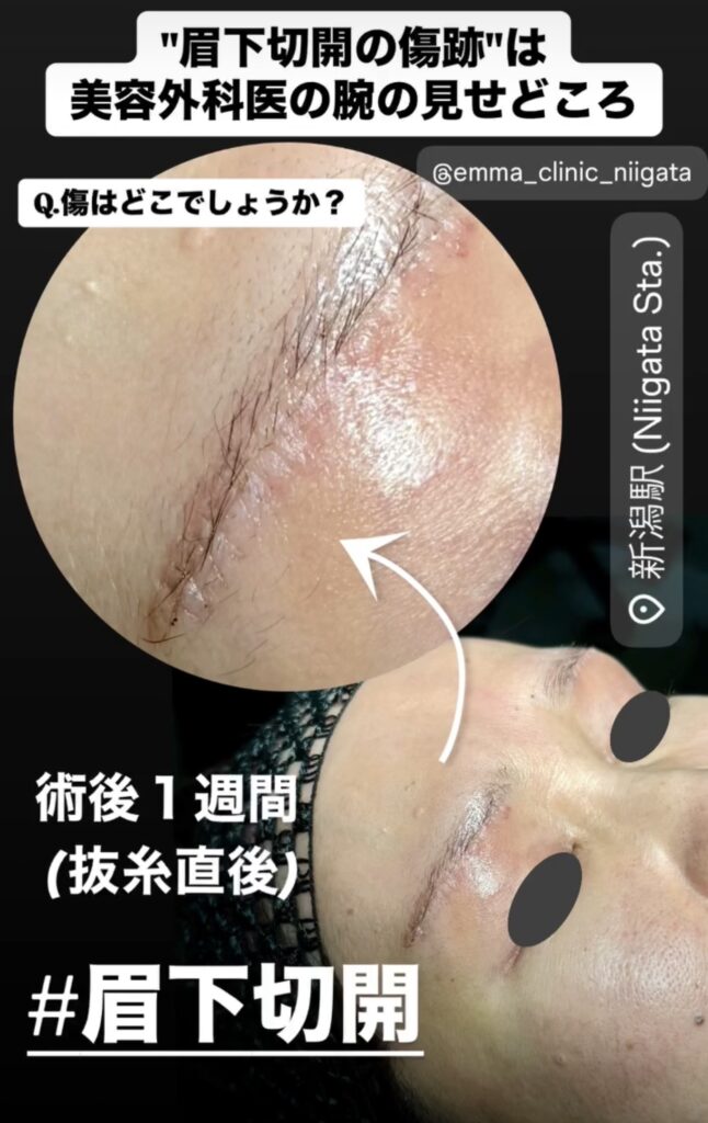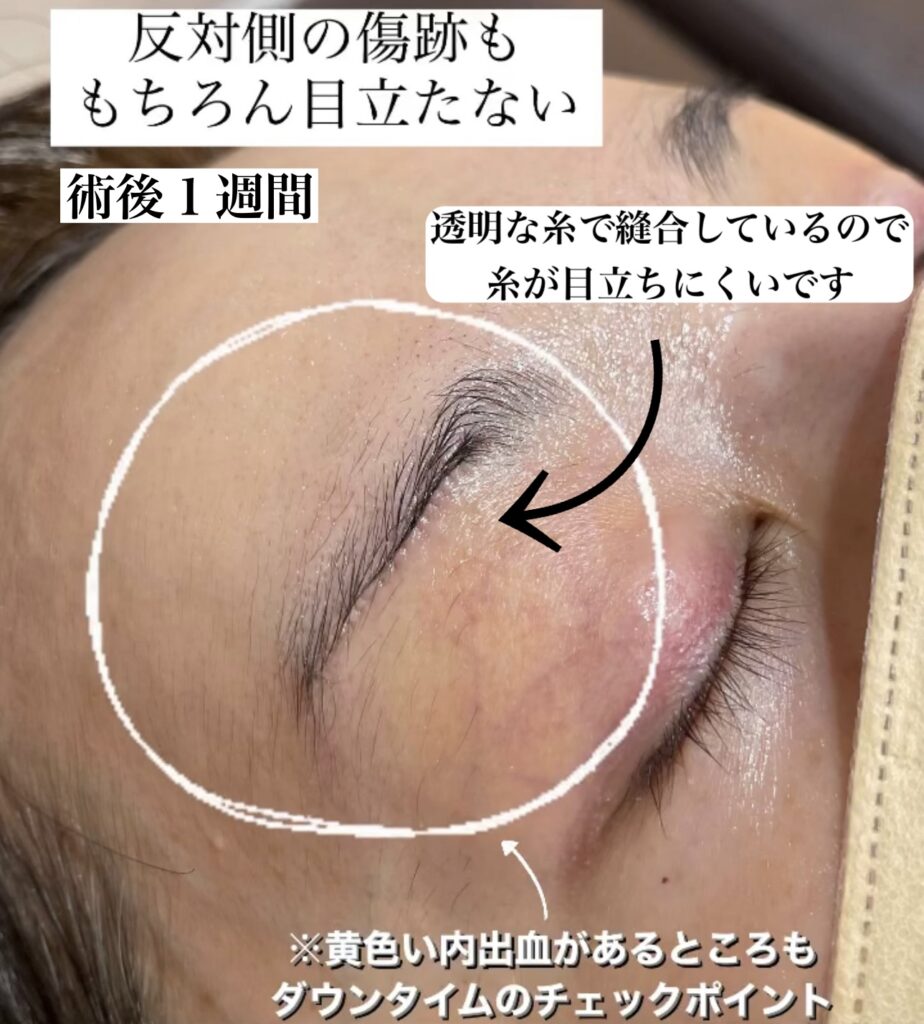 眉下切開はできるだけ目立たないところに傷をデザインすること、目に見えない傷の下の処理をどの程度綺麗に扱っているのか、どれだけ綺麗に縫合するかなど美容外科医にとって腕の見せ所です。